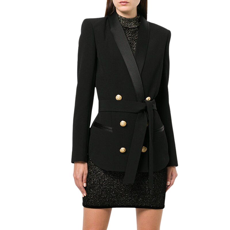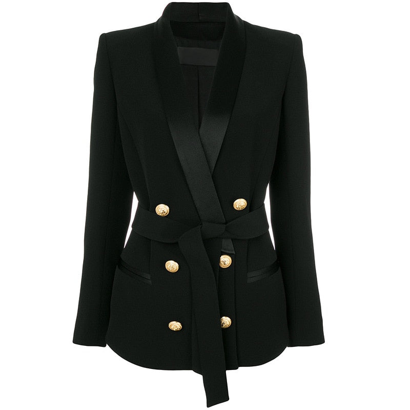 Double Breasted Formal Blazer Jacket-Black/Pink
