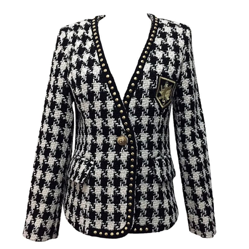 Rivet Tweed Houndstooth Blazer Jacket-Black